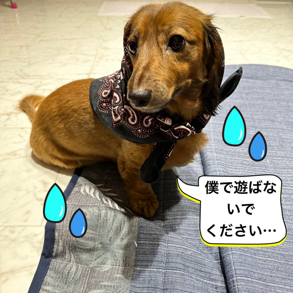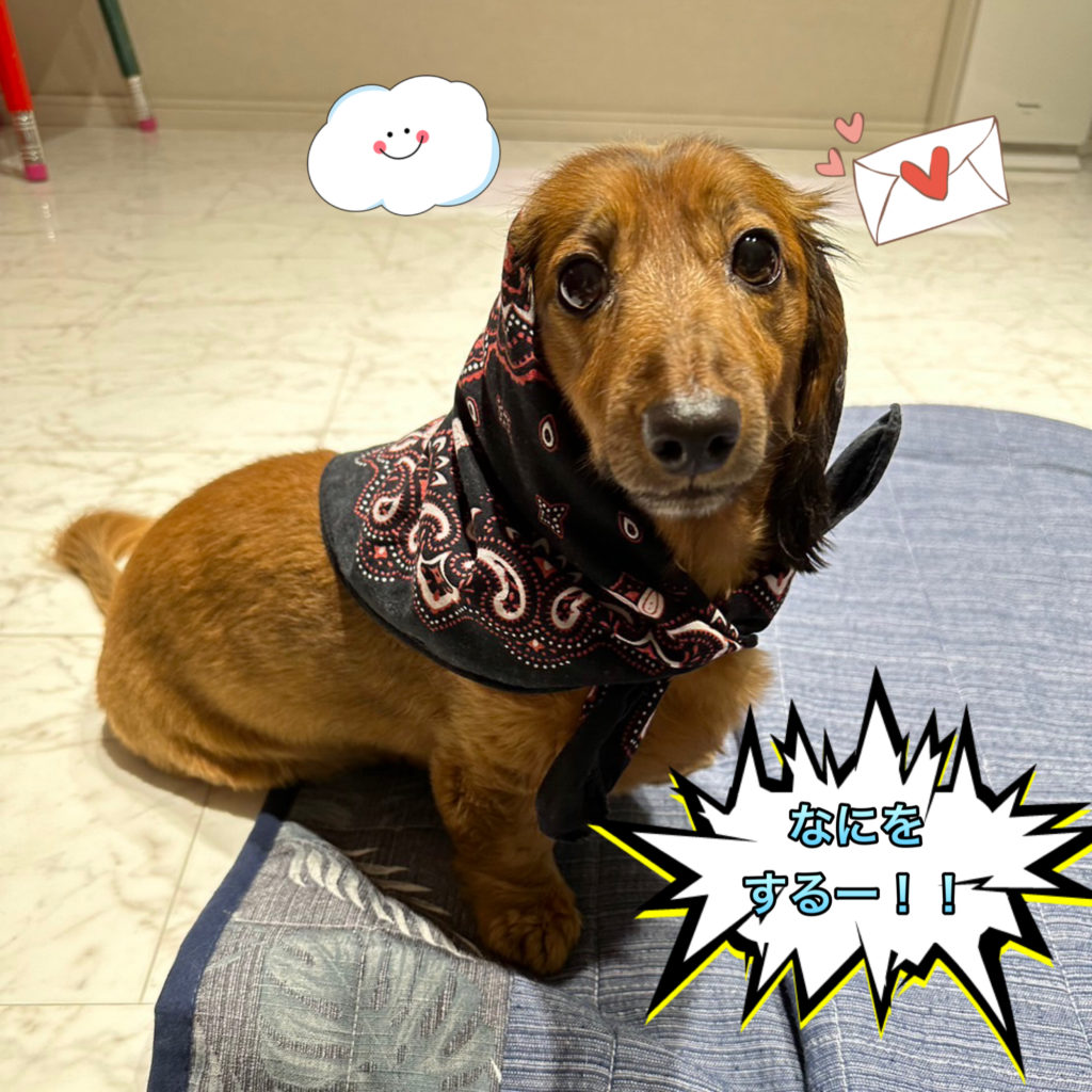 バンダナを頭に被せられました😢